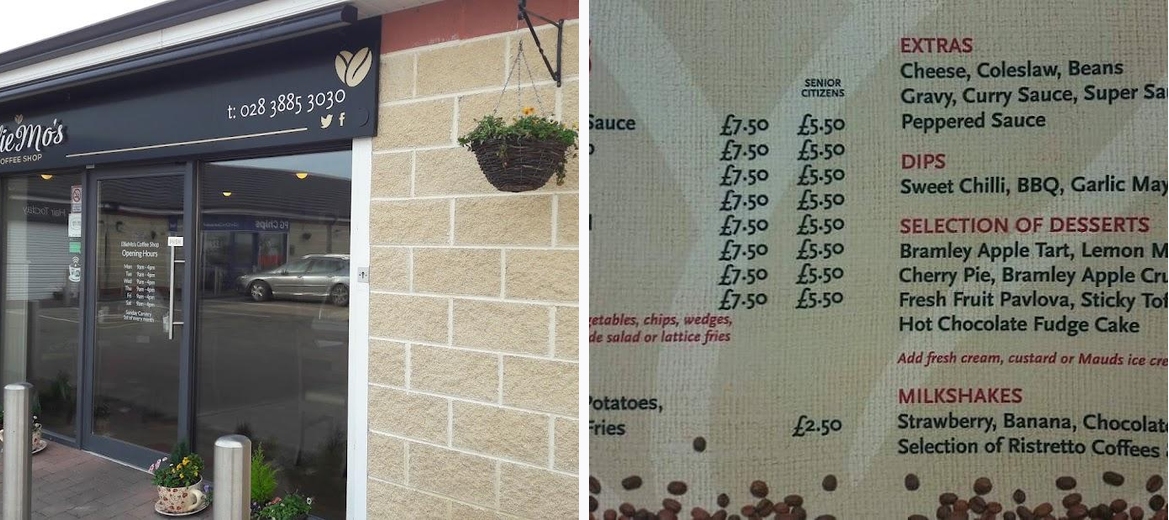 Welcome to Ellie Mo's, your cozy bistro and coffee shop located in the heart of Portadown. We pride ourselves on offering a warm atmosphere perfect for solo dining, group gatherings, or a casual work session. With a diverse menu featuring breakfast, lunch, and dinner options, there’s something for everyone, including delicious coffee, healthy choices, and delightful desserts. Enjoy our outdoor seating or take advantage of our takeaway and delivery services. Families are welcome, with a kids' menu and high chairs available. Join us for friendly service, great value, and a memorable dining experience at Ellie Mo's!Customers rave about the delicious coffee and extensive tea selection—perfect for pairing with one of their famous breakfasts. The standout item is their fry, which is known as a crowd-pleaser among locals. The friendly staff shines bright here, consistently described as helpful and welcoming, enhancing the overall experience. The casual ambience makes it an inviting place to gather with friends or simply enjoy a book with a cup of joe. Many appreciate the value for money; the reasonable prices combined with generous portions make dining at Ellie Mo's a treat. Desserts like the Sticky Toffee Pudding and Bramley Apple Tart also receive high praise.